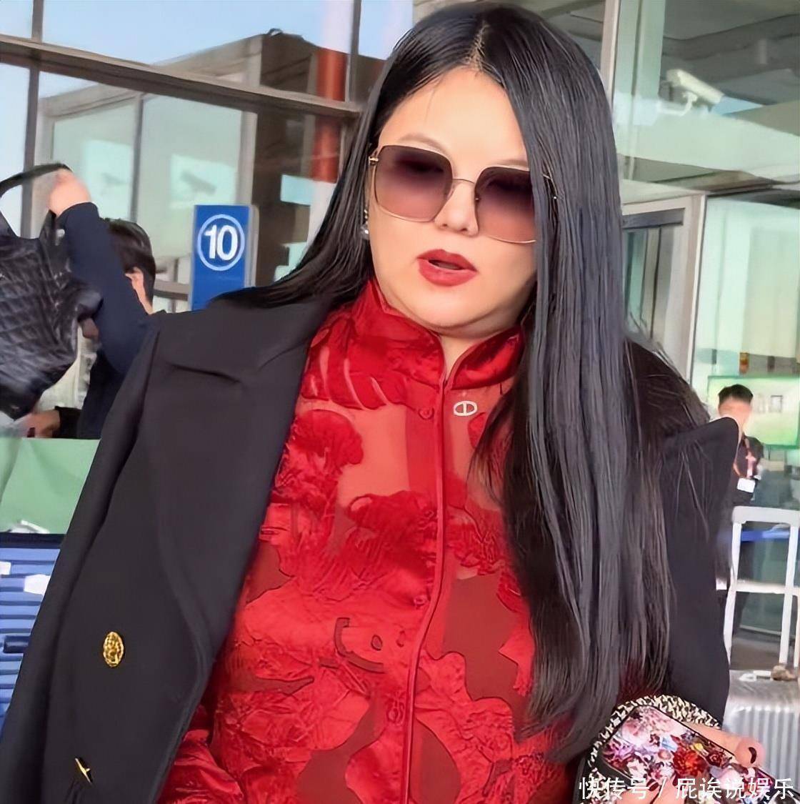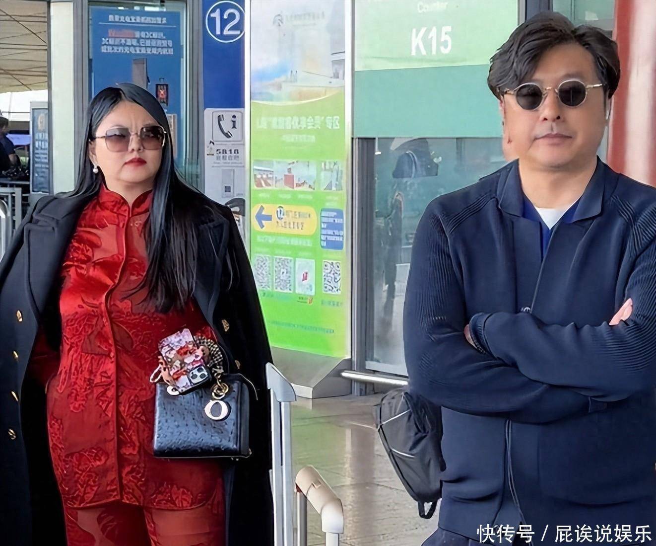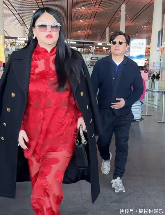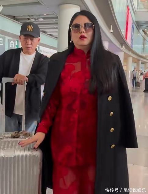 庆生完第二天,俩人就一起回国,机场生图一出来,评论区直接炸了。李湘穿了套红色新中式套装,外面披件黑色大衣,手拎着 4 万的鸵鸟皮包包,墨镜一戴,女总裁气场直接拉满。但大家更关注的是她的身材,双下巴特别明显,身形看着比以前丰腴不少,有网友调侃说 “远看像一座山”,跟旁边的王岳伦形成鲜明对比 —— 王岳伦总被说胖,这次居然瘦得精干,站在李湘旁边反倒像个随行助理。