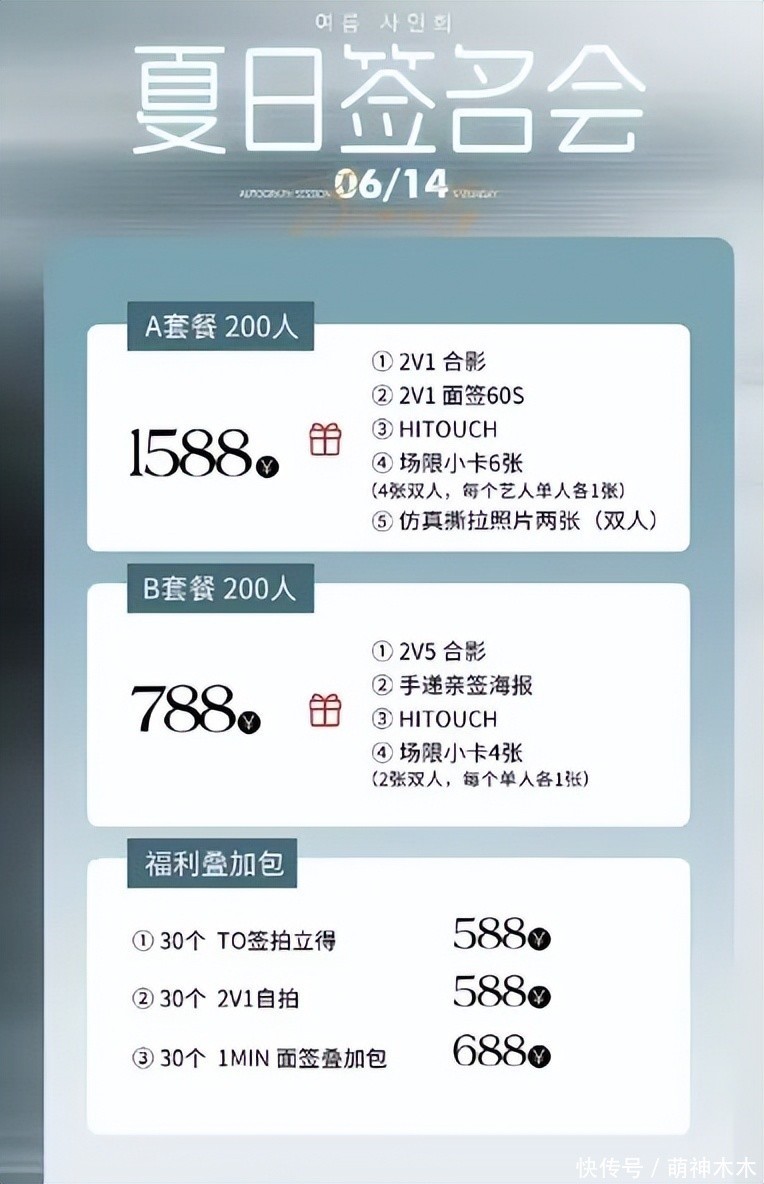 大概罗列了一下,光是今年来内地开见面会、签售会的韩国明星,两只手都数不过来。让人更加震惊的是,这些活动的入场门票都不便宜,动辄几百上千元,且内容只是和明星合影、签名、售卖小卡片。看来粉丝真是花高价,为情绪价值买单。