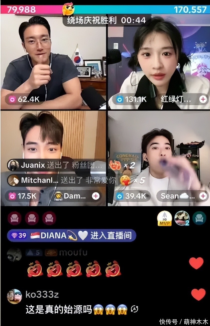 崔始源更是和其他网红PK连麦,凭借人气圈钱。值得一提的是,他当时连线的几位人里,还有在国内被封禁的某网红。从画面数据看,他的人气甚至还不如这位网红。