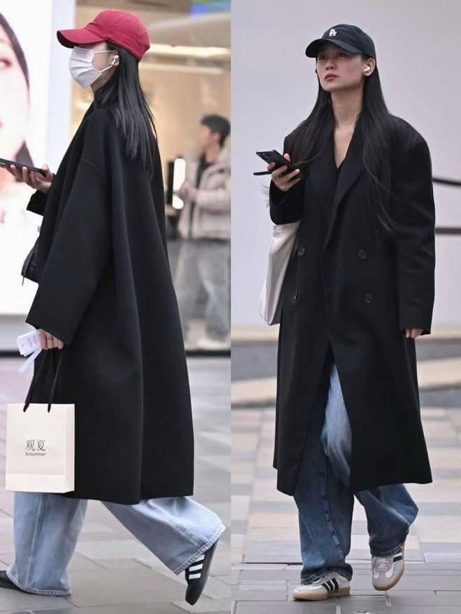 我们日常穿搭有的时候还是想要休闲点风格,这时候我们可以选择德训鞋,或者是一双小板鞋,平底单鞋,加上牛仔直筒裤,再穿上比较有垂坠感的大衣外套,就能应对你日常的出行。