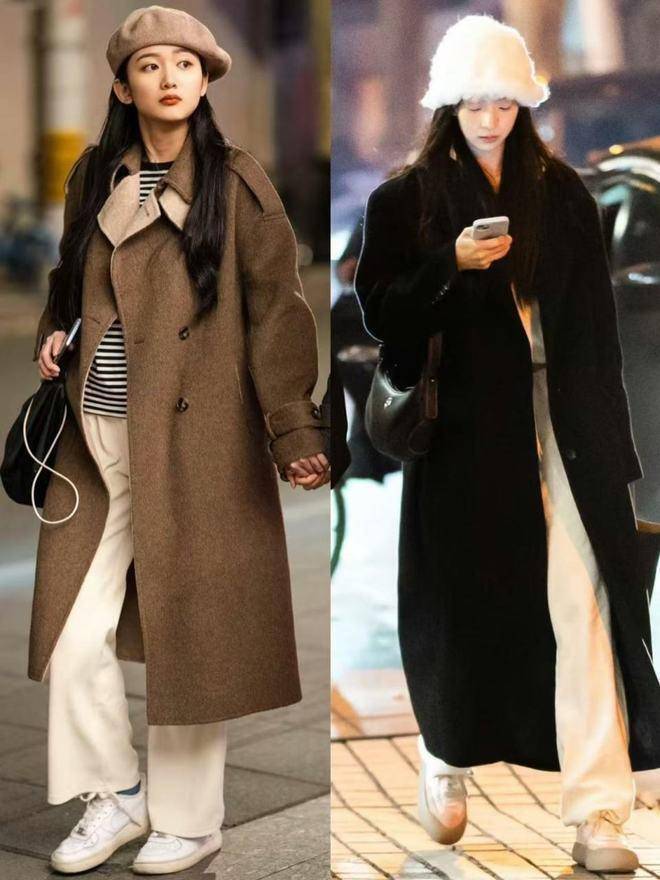 (一)为何穿大衣尽量不要搭配打底裤?①:白色阔腿裤搭配大衣外套