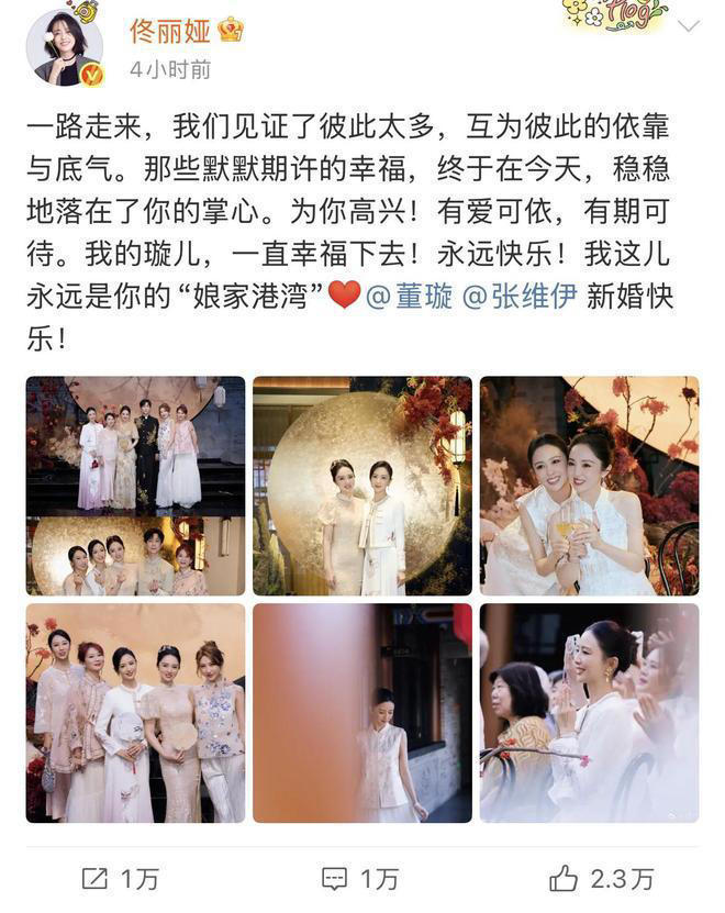 好友佟丽娅在第一时间为董璇送上祝福,并分享了多张伴娘照,画面中两人的笑容与情感,让人感受到友情的长久与真挚。而对于“小酒窝”和“朵朵”来说,这场婚礼也像是他们友情故事的见证,未来也许会成为他们成长旅程中美好的一页。