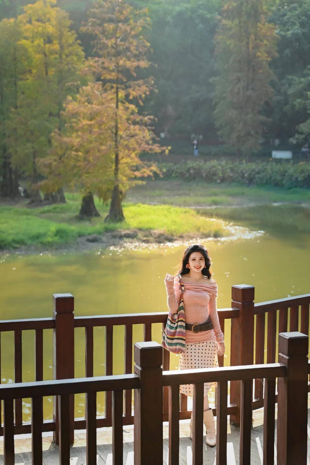 树林拍照如果有栏杆或者围栏,可以背靠着站,身体自然放松,头微微转向一侧笑,这个动作不需要太多设计,拍出来会很生活化,也很容易出片,整体氛围会很舒服。