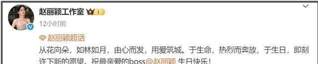 怎么看都透露着一种赵丽颖有新恋情的趋势, 毕竟翻开周方之前的祝福,明显的感觉到不同。 周方作为赵丽颖的“头号闺蜜”,应该是最能知道她的事情。 如果说周方的这番话证据还不是很足够,那么赵丽颖工作室的文案,就让网友感觉有些实锤了。 文案写道:“从花向朵,如林如月,由心而发,用爱筑城。于生命,热烈而奔放,于生日,即刻许下新的愿望。”