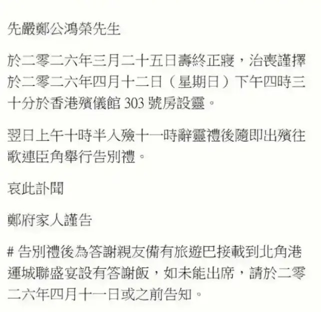 巧的是,郑雷告别仪式举办日当天,刚好传出赌王二房三女何超蕸离世的消息,何超蕸一向低调,终身未婚几乎不公开露面,是豪门里少见的隐形人。两个不同圈子的人,有着同样低调的人生选择,一辈子不抢关注不凑热闹,离开的时候也安安静静,不免让人唏嘘。