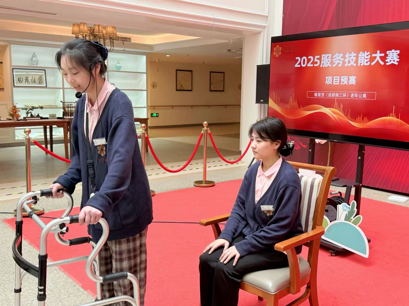 协助使用助行器、耐心辅助进餐……在椿萱茂(成都南三环)老年公寓的比赛现场,这些考题正是每位生活助理日常工作的缩影。选手们随机抽题,娴熟而专注地展示着专业能力。成功晋级决赛的周冬梅在分享感受时说:“看到伙伴们出色的表现,我更觉得要加倍努力。决赛是一个新起点,我希望能用更规范、更贴心的服务,让长辈们真切地感受到'我们用心,他们安心'。”