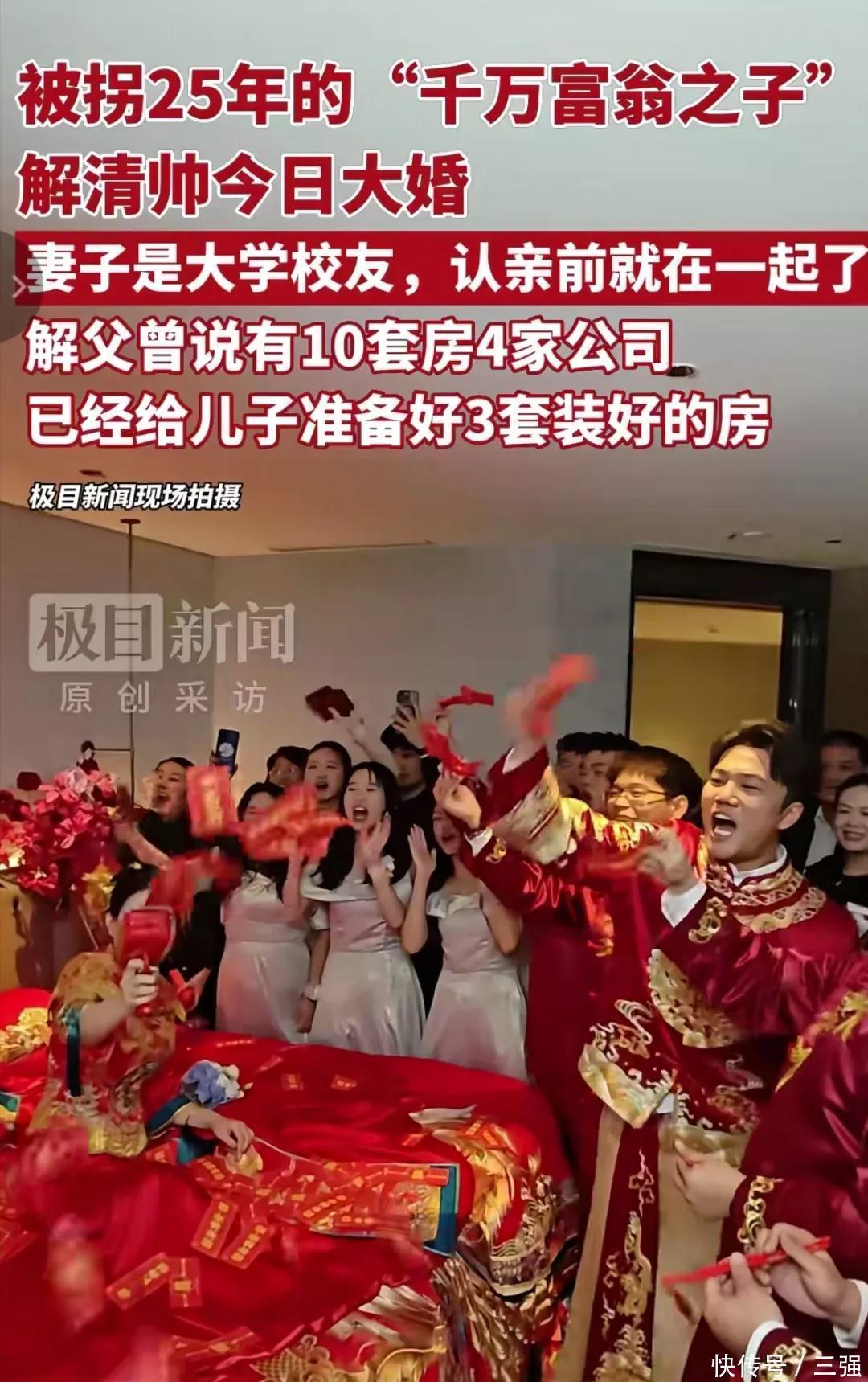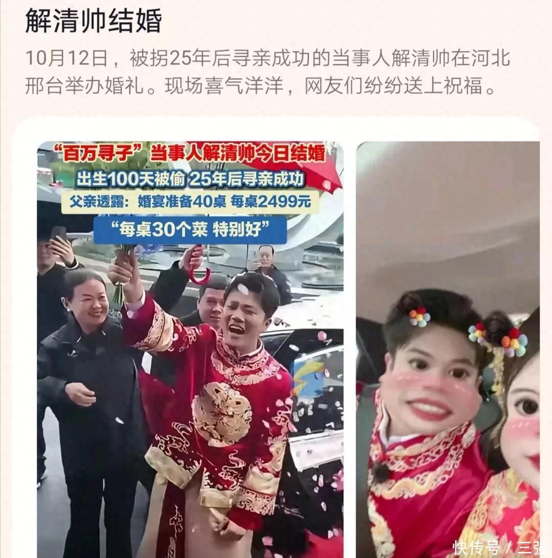 如今,27岁的他,不仅与亲生父母相认,也迎来了自己的人生大事,与相年的女友结婚,携手走进婚姻的殿堂。看网上流出解清帅大婚的画面,喜庆的氛围感相当拉满。